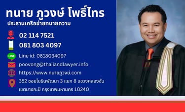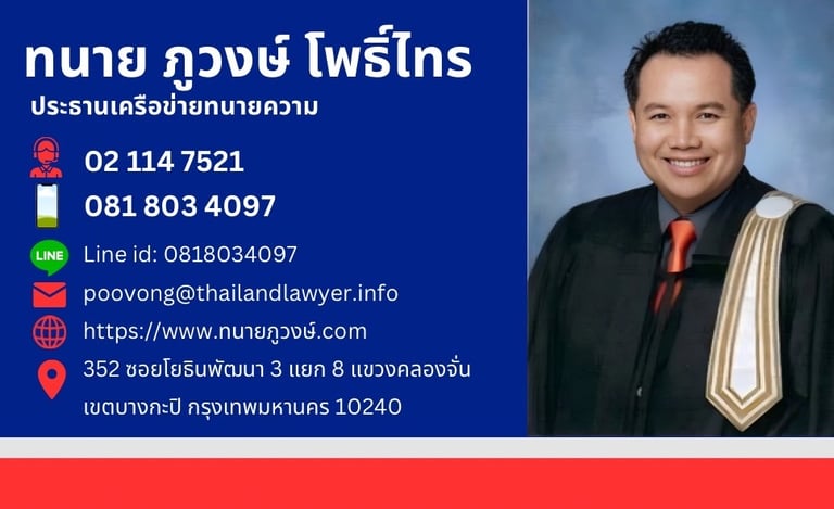 ก่อนที่จะไปนัดพบทนาความที่เราจัดหาให้คุณ คุยกับแอดมินก่อนนะครับ แอดมินชื่อทนายภูวงษ์ เป็นทนายความนับแต่ปี 2531 ถึงปัจจุบัน มีประสบการณ์หลากหลายทั้งงานด้านบริการ ที่ปรึกษากฎหมายและว่าความในคดีต่างๆ